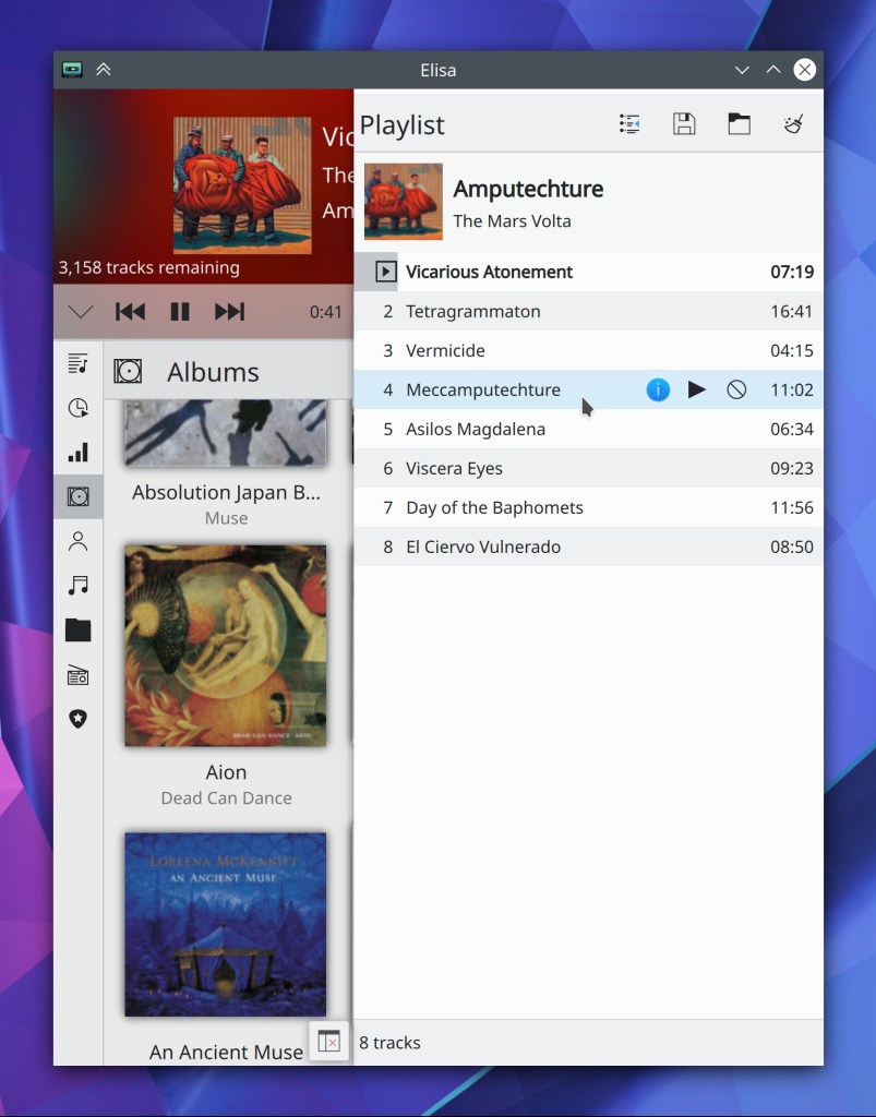 With every new release of Elisa I get happier and happier. I just wish it will get where Amarok was in the past, and then it will continue for a long time. Plasma has been without a great music player for long enough.