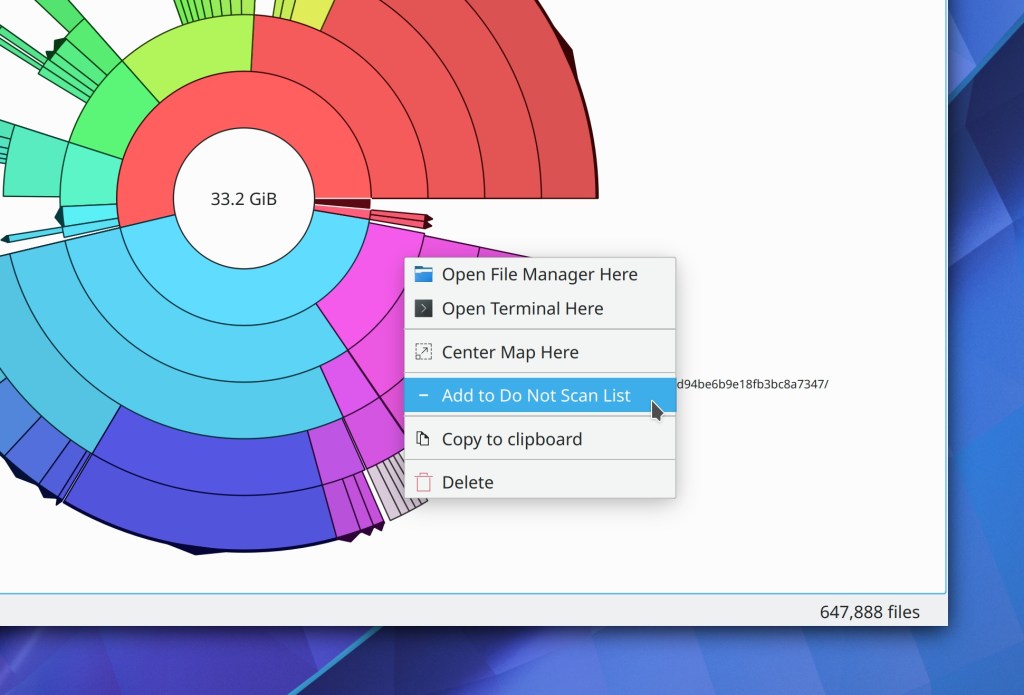 Filelight now offers you an easy way to exclude a folder from further indexing (Efe Çiftci, Filelight 20.12):