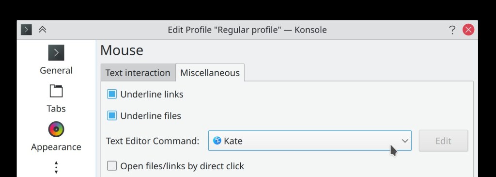Konsole now lets you select which text editor is opened when you Ctrl+click on a text file to open it (Ahmad Samir, Konsole 21.04):