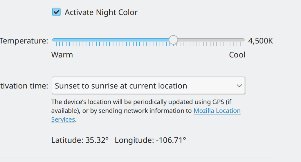 The Night Colour KCM improvements are nice. The only thing I am still missing is a separate bar for also reducing the day-time (default) colour temperature. I think I had already filed a feature request about this some time ago 🙂