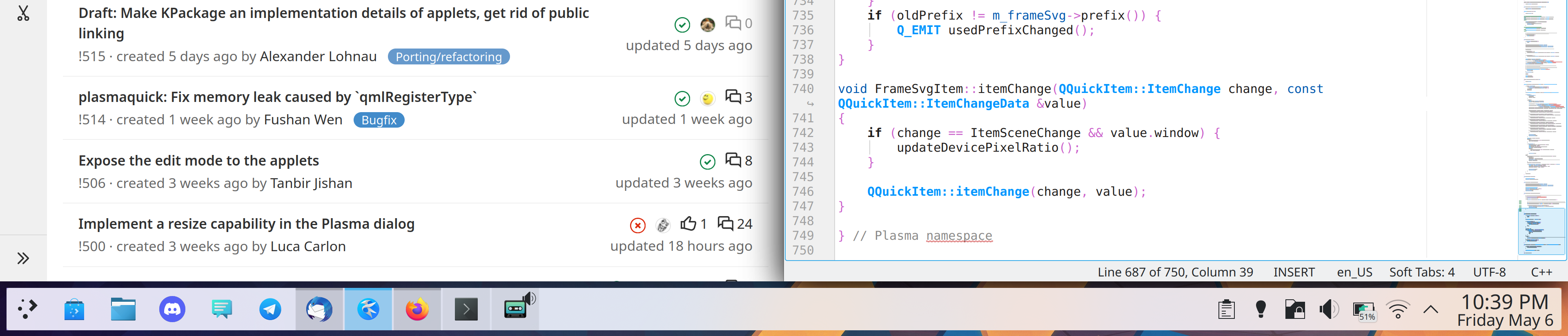 10. Hoping that Fedora 35 will get newest frameworks. Only 6 gigs of ram and occassional memory leaks make me need to reboot often