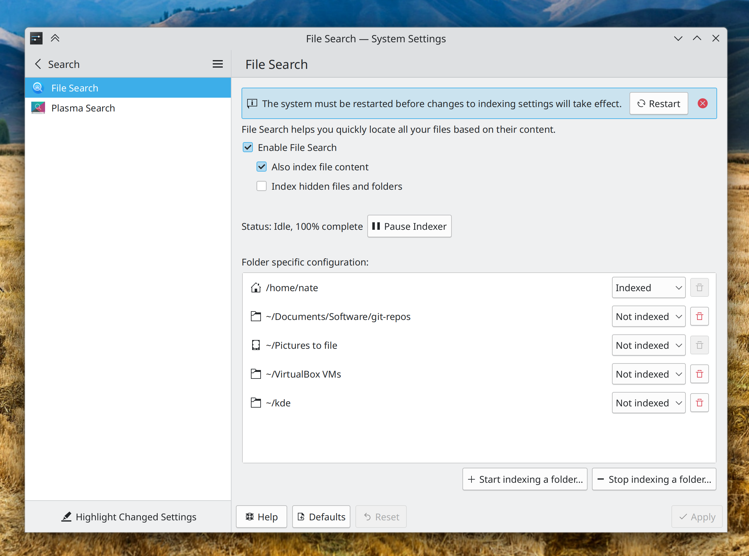 When changing indexing settings that require a reboot to take effect on System Settings’ File Search page, it will now present you with a message informing you of this, with a big friendly button you can click on to reboot immediately (me: Nate Graham, Plasma 5.27. Link):