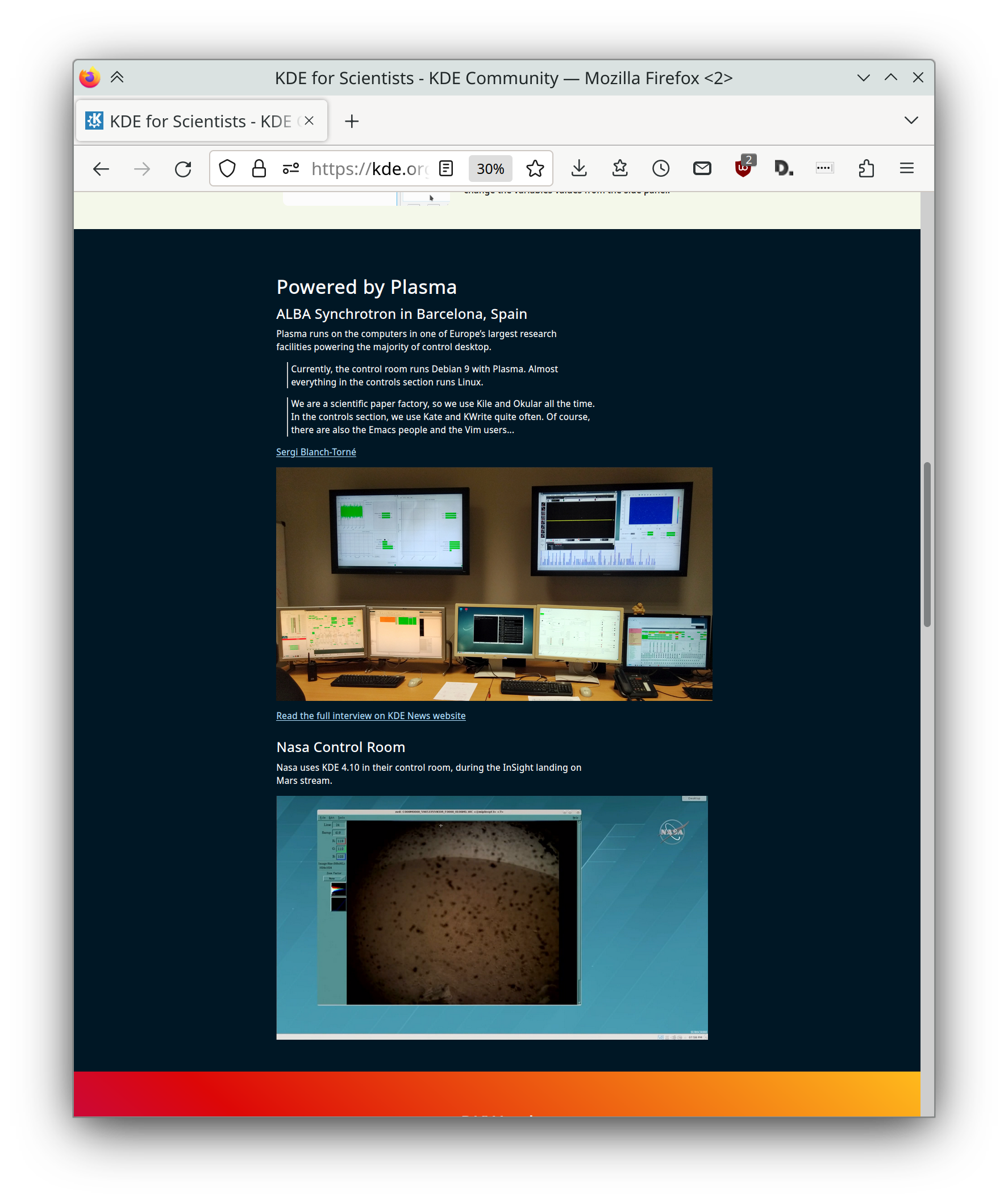 https://kde.org/for/scientists is now live! This web page showcases the best KDE software to use for professional, technical, scientific purposes, including by NASA and Barcalona’s ALBA Synchrotron.