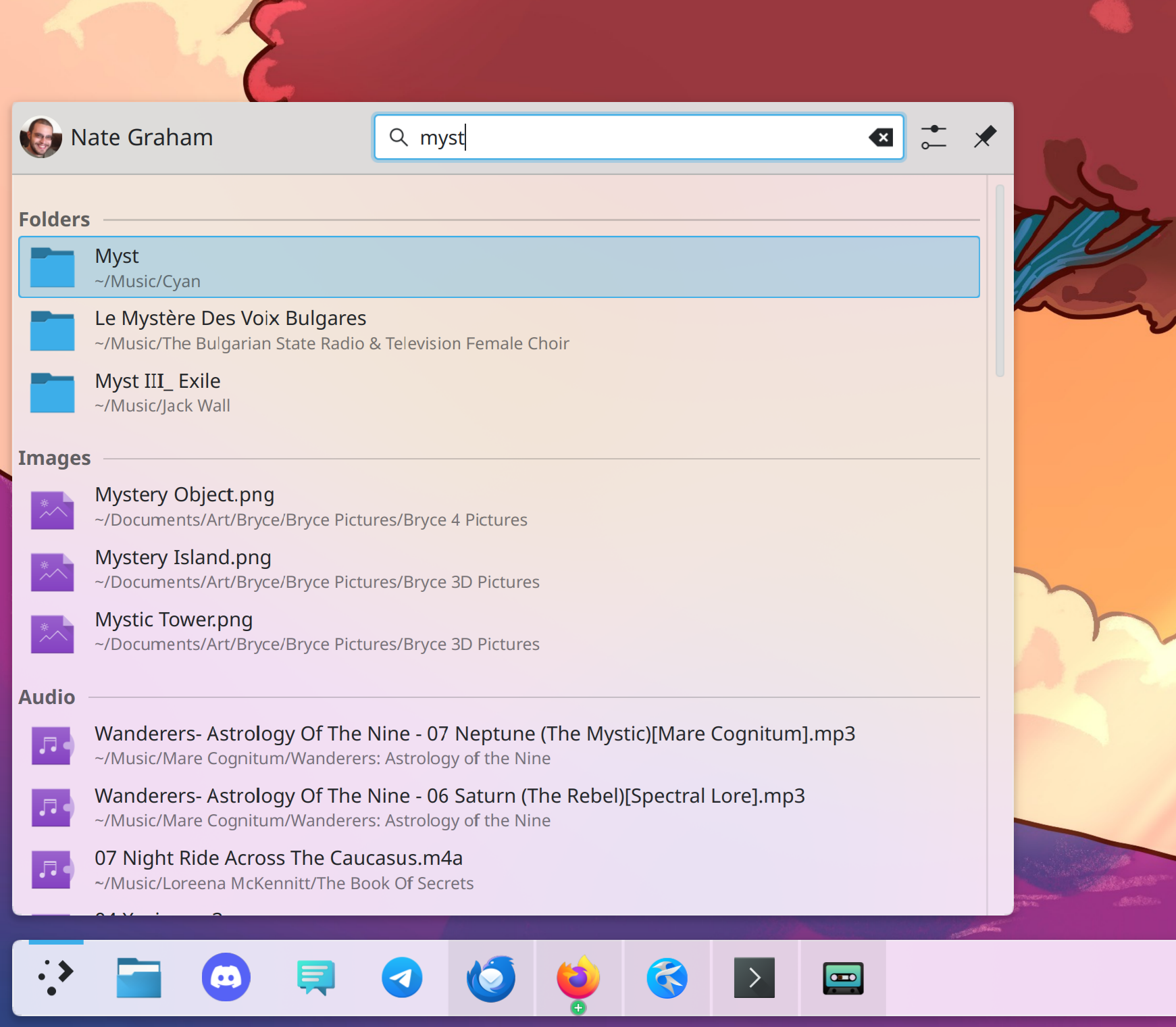 Looking at the screenshot of the search function, how cool would it be to have thumbnails of the images and embedded artwork of the music files showing? Very cool. That’s how cool. BTW, the text seems to be a little bit too high up for the results, in comparison to the icons. Maybe it’s the icons that are placed a bit too low..