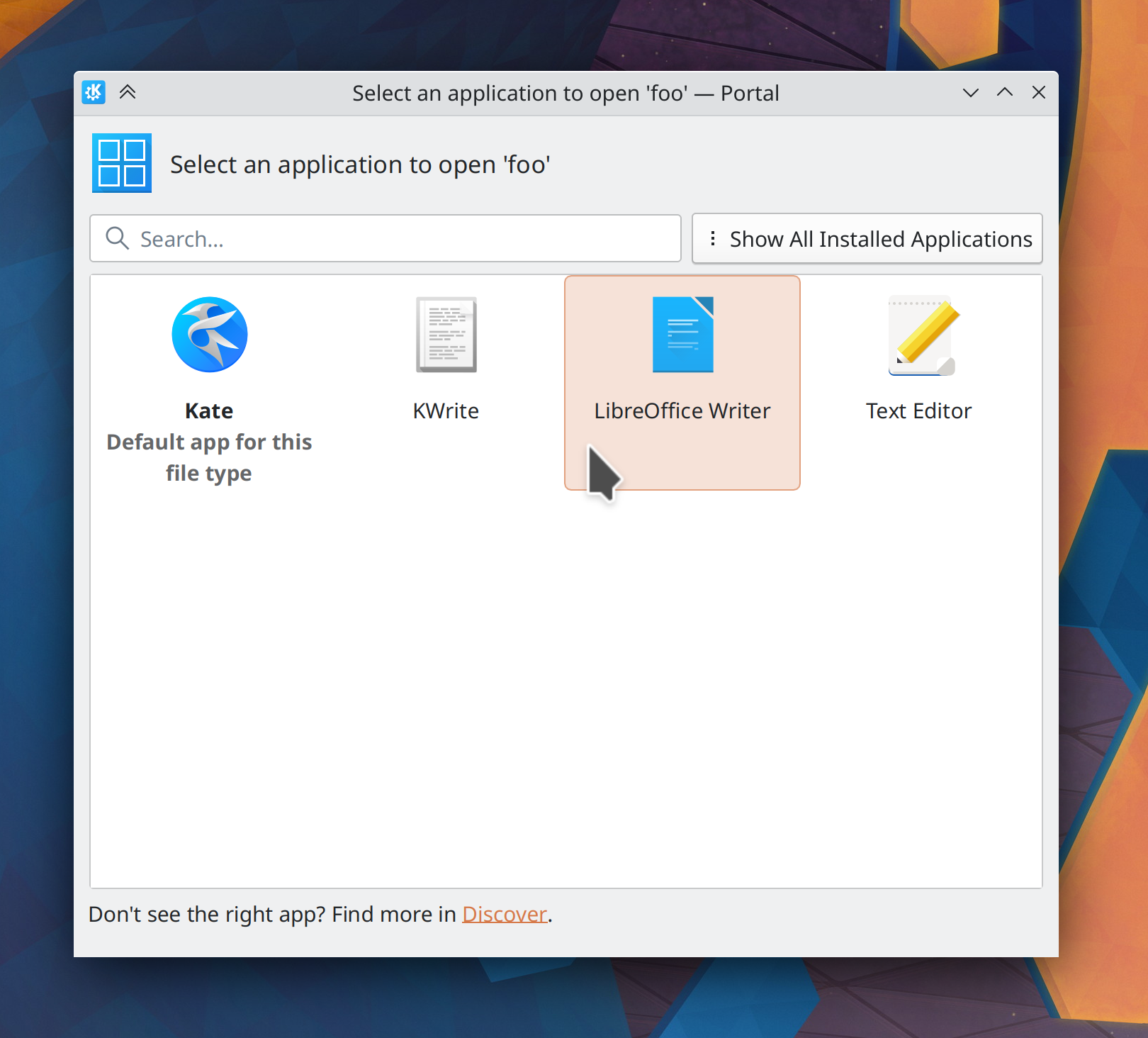 Discover now displays a more actionable and relevant error message when you launch it without any app backends available, including a special message tailored specifically for Arch Linux (me: Nate Graham, Plasma 5.25):