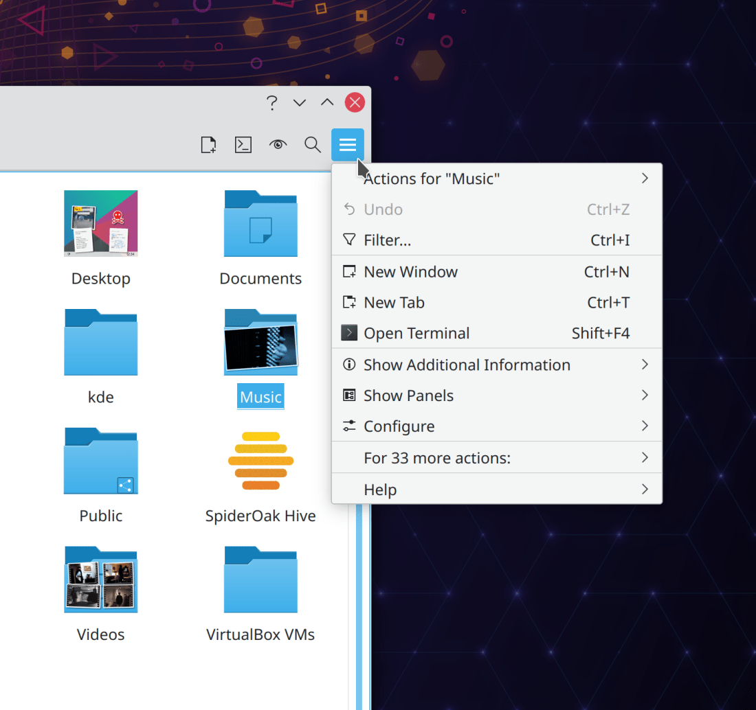System Tray applets with hamburger menus no longer redundantly show the same configure action inside them that is already visible available as a button on the header itself (me: Nate Graham, Plasma 5.22):