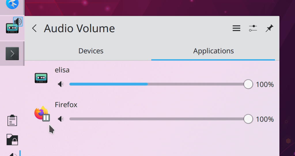 The Audio Volume applet’s Applications tab now distinguishes between applications that are currently playing or recording audio, and those that are not (Kai Uwe Broulik, Plasma 5.23):