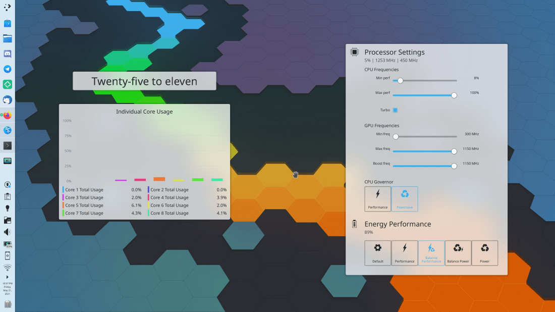 The adaptive panel transparency feature and the Minimize All applet now work properly when using KWin’s “keep thumbnails for minimized windows” setting (Bharadwaj Raju and Abhijeet Viswa, Plasma 5.22)