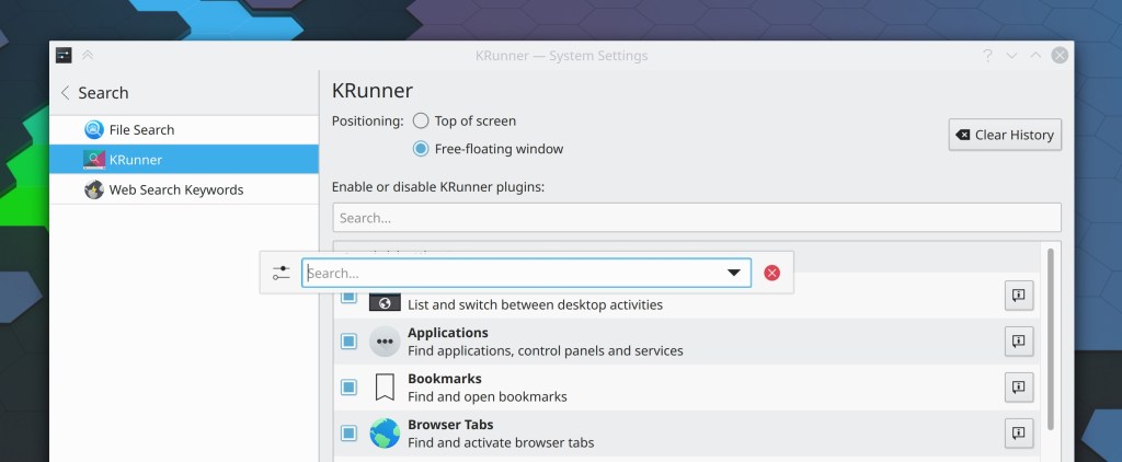 KRunner now retains the previously-visible text when closed and re-opened, so you can return super easily to the prior search if it was still relevant. If you find this annoying, you can turn it off, of course. 🙂 (Alexander Lohnau, Plasma 5.20)