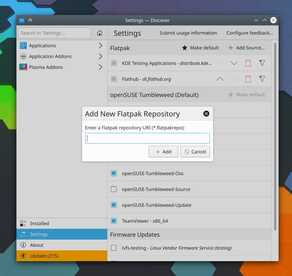 Fixed a bug that could prevent widgets installed using the “Get New [Thing]” window to not be updateable in Discover (Alexander Lohnau, Plasma 5.20)